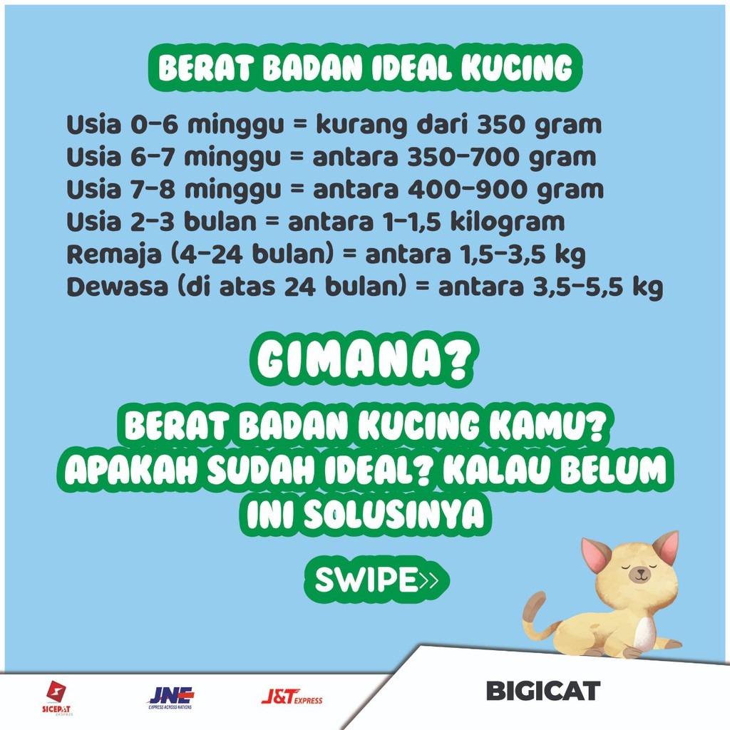 Berat badan normal bayi 3 bulan berbeda antara bayi laki-laki dan perempuan. Berat Badan Ideal untuk Kucing. Kebutuhan kalori harian kitten adalah 30 kalori per kilogram berat badan.